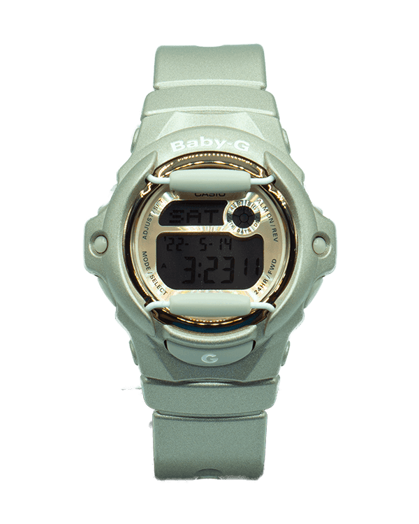 The Ladies’ Casio Baby-G Model:BG169G-4 accented by the liberal use of rose gold colored metal parts gives this model the look of a fashionable accessory.