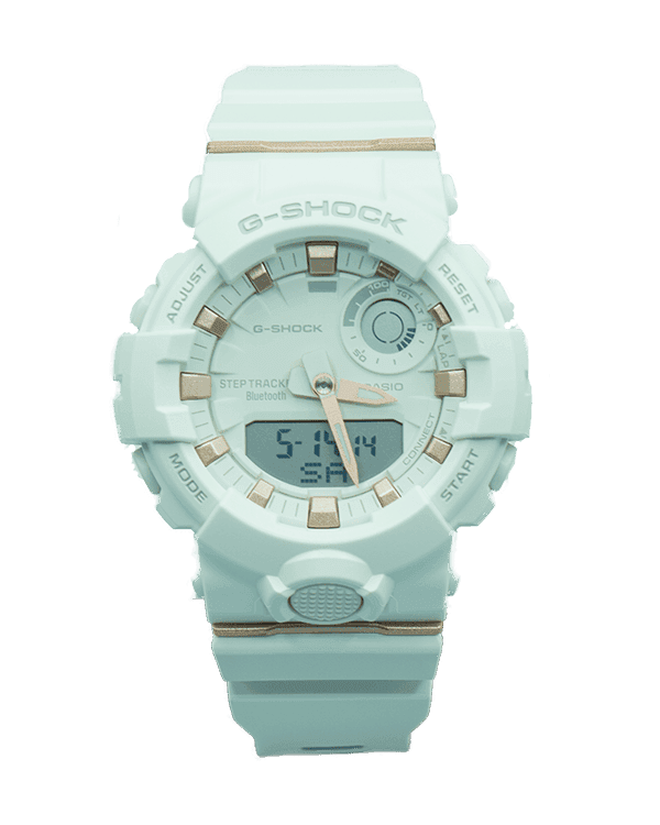 This Ladies’ Casio G-SHOCK Model: GMAB800-7A is the compact and wearable GMA-B800, which comes with a pedometer and a Countdown Timer feature for interval measurement.