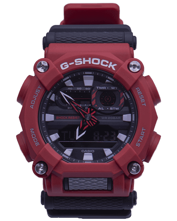 This Men’s Casio G-SHOCK Model: GA900-4A has a combination of analog hands with a digital display that enhances usability. High visibility is achieved, even in the powerful face, by inserting graphics on the hands and dial, giving this watch a new bold look.