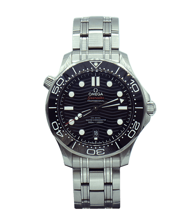 An Omega Seamaster Co-Axial 300M Diver, sold by Prestige Watches, is a men’s automatic watch. Made by Omega, a luxury Swiss company dating back to 1848. The Omega Seamaster Diver is an example of craftsmanship with the Co-Axial automatic Swiss-made movement. This piece showcases a very classy appearance, Omega style. The dial on this Omega Seamaster is black and features Skeleton hands with Super-LumiNova Markers.