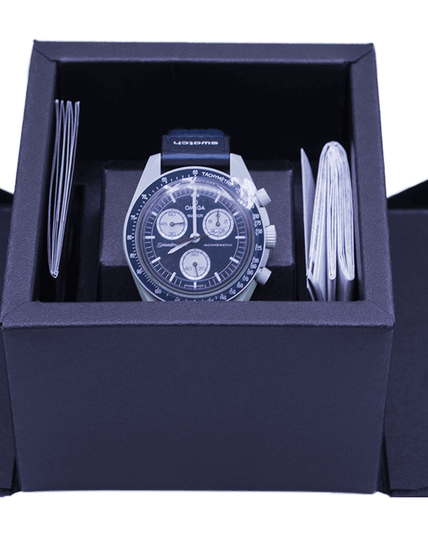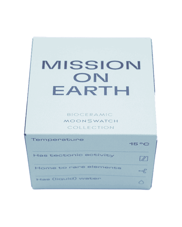 The MOONSWATCH MISSION ON EARTH features superluminova hands and markers, for an amazing glow at night. The MOONSWATCH MISSION ON EARTH also features the famous Omega Speedmaster logo on the strap, sought out by many collectors. The watch has an amazing crystal design, that makes it stand out.