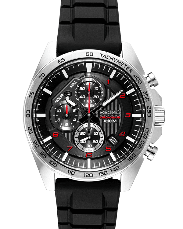 This Seiko Men’s Essentials Model SSB325  features a date display, with a Chrono dial. The dial finished in a linear Black color pairs perfectly with the stainless steel hands and markers. The watch is 44mm in diameter, making it a perfect size for any wrist.